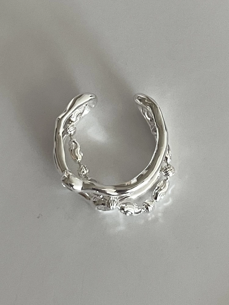 다양한 디테일의 선이 얽힌 모습으로 볼드하지만 여성스러운 느낌이 강한 디자인입니다. 단독으로 착용해도 멋스럽습니다.