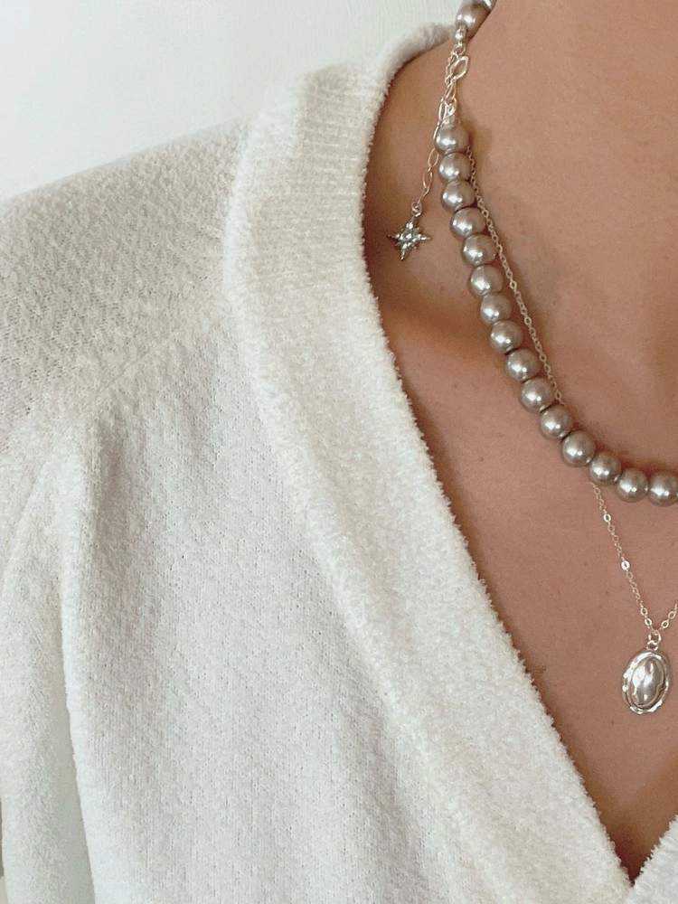 담은 진주 목걸이입니다. 마감 별 팬던트 장식으로