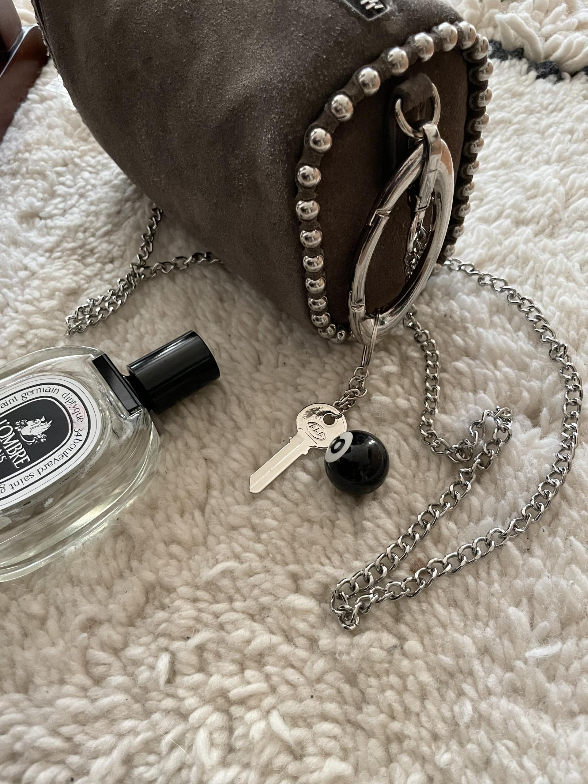 심플한 디자인에 열쇠참과 8자 구슬로로 엣지를 더하여