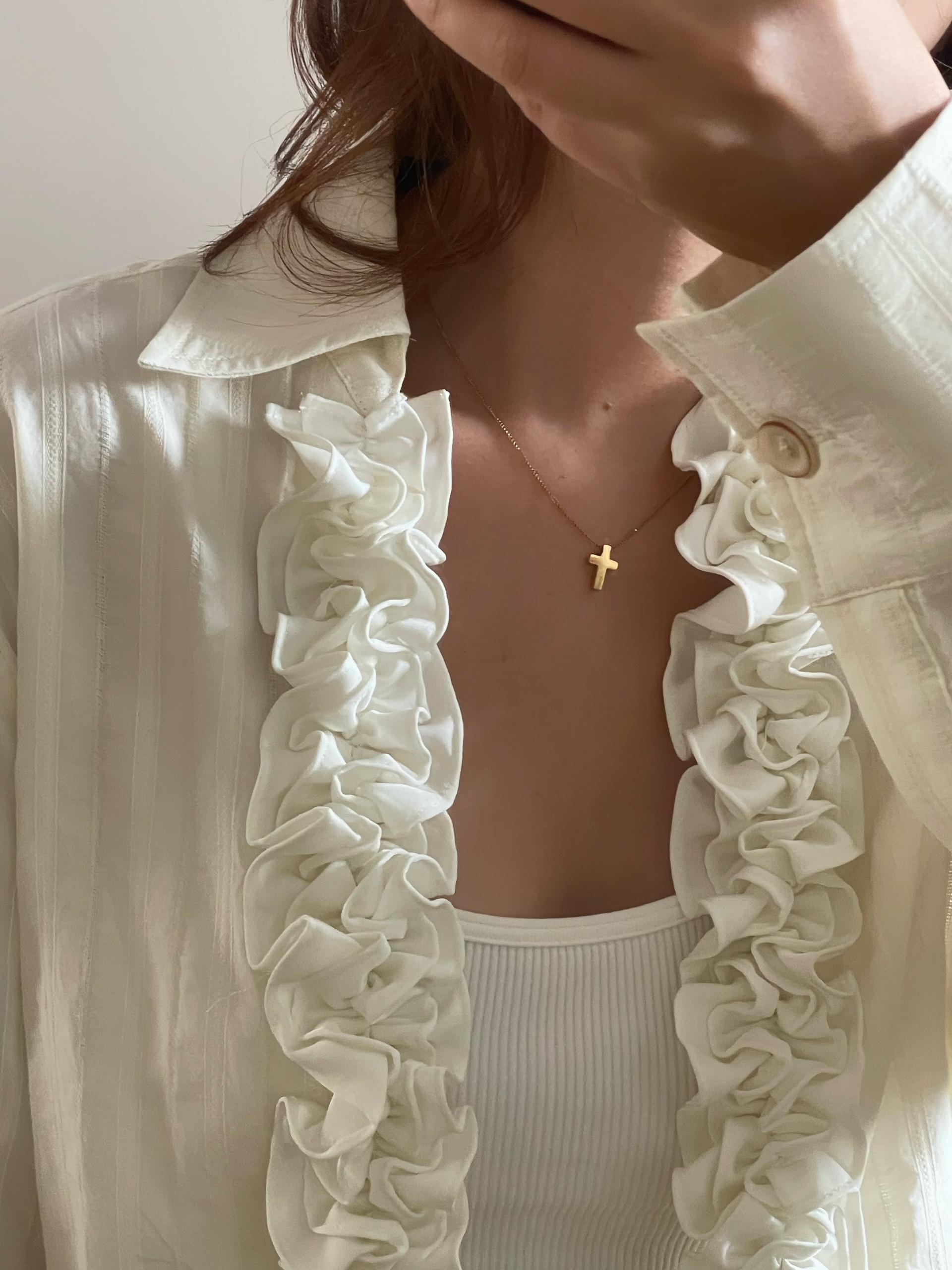 보헤미안룩을 데일리하게 연출하기 좋은 골드 십자가 목걸이 입니다.