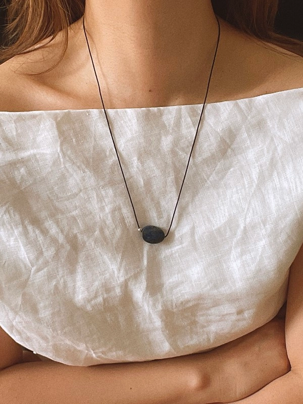 Lapis Lazuli(천연 원석), stering silver 925(실버볼), nylon(끈)