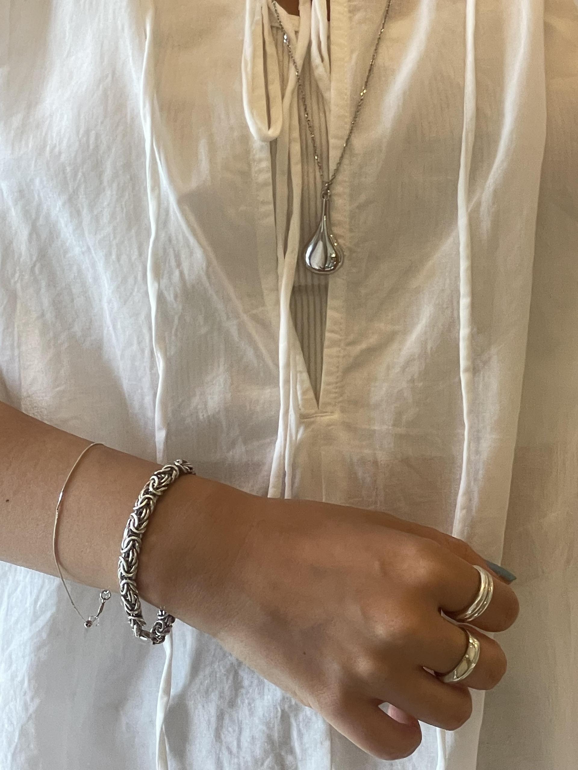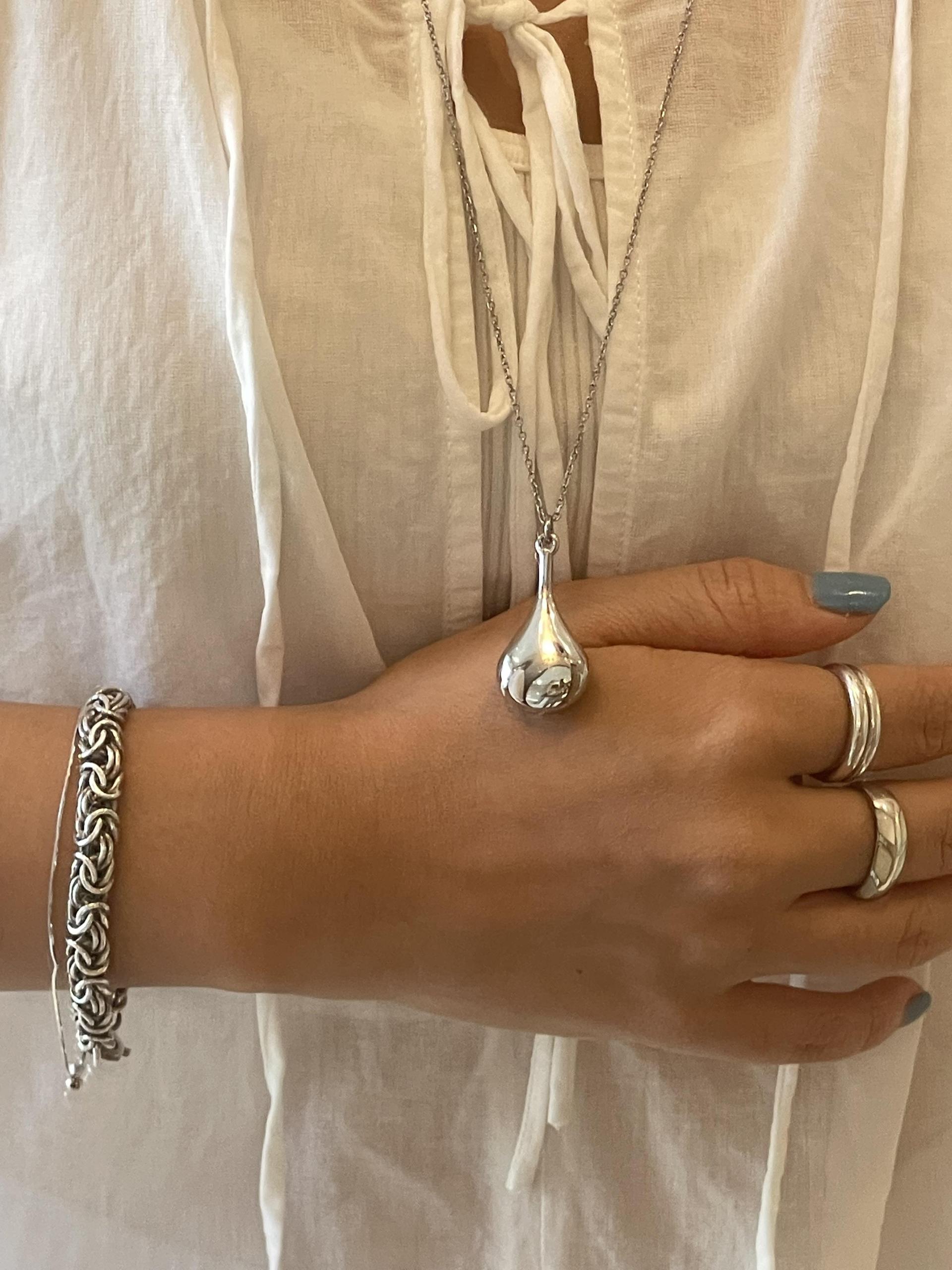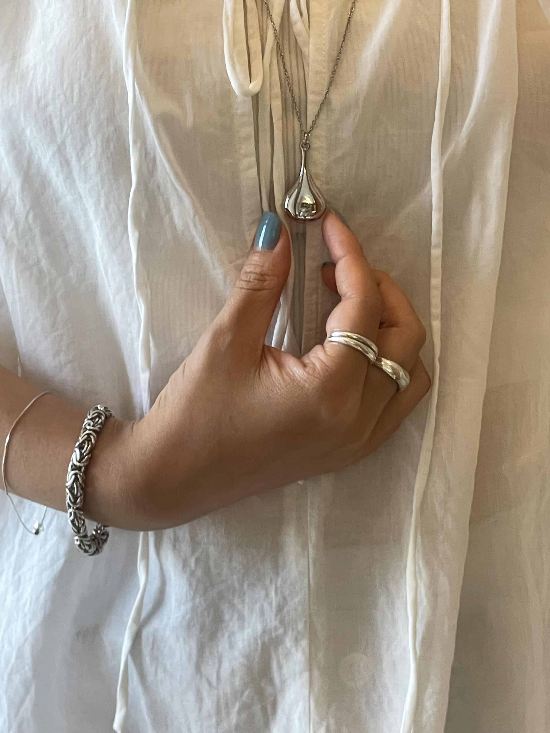 실버 베이스 모양을 닮은 볼드한 팬던트의 존재감이 스타일을 더 감각적으로 만들어드리며,