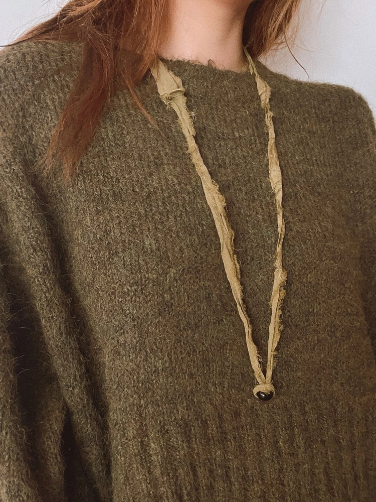 러프하게 세이지 컬러를 담은 그린톤 다잉과 러스틱하고 고급스러운 느낌을 주는 스트랩과 오닉스 원석의 조합으로 에스닉한 스트랩 목걸이를 완성하였습니다. 니트나 티셔츠 위에 러프하게 길게 착용하여보세요. 오늘의 룩이 더욱 세련되고 멋스럽게 느껴지실꺼예요!