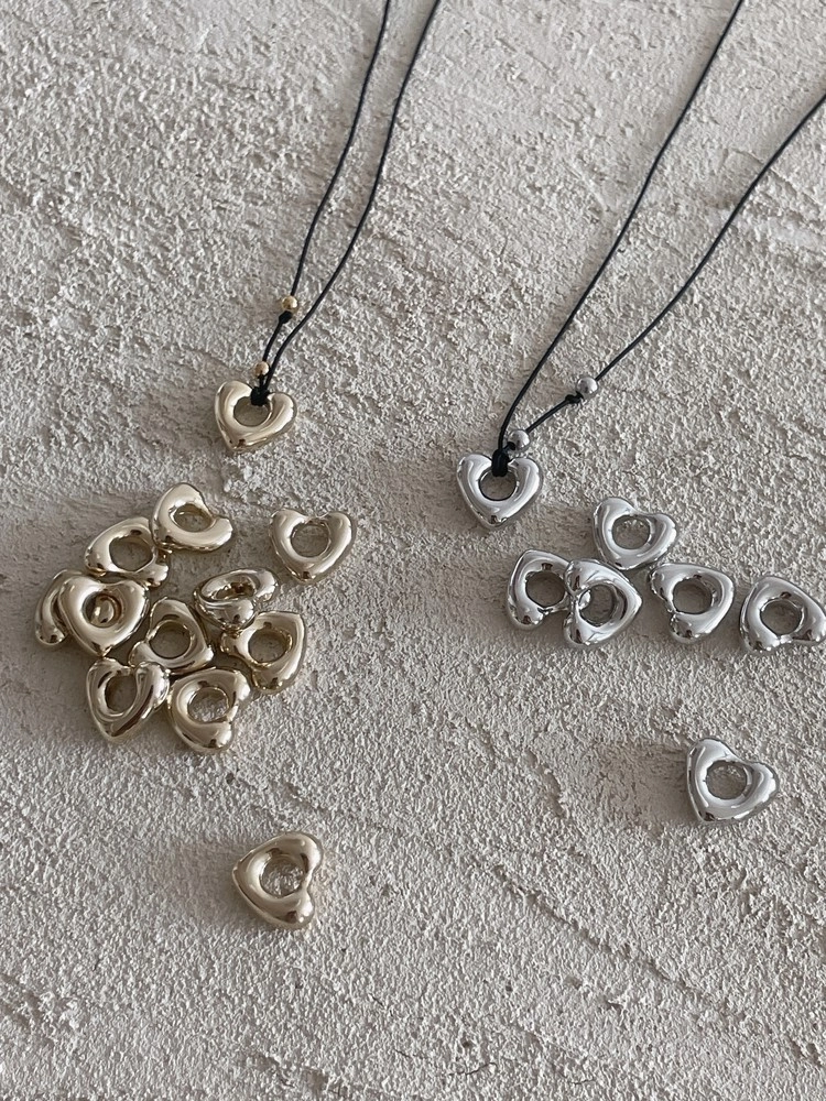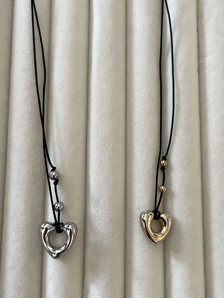 볼드한 하트 팬던트를 포인트로 작은 골드/실버볼을