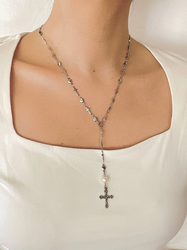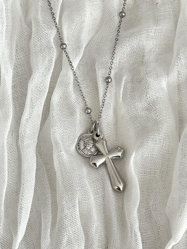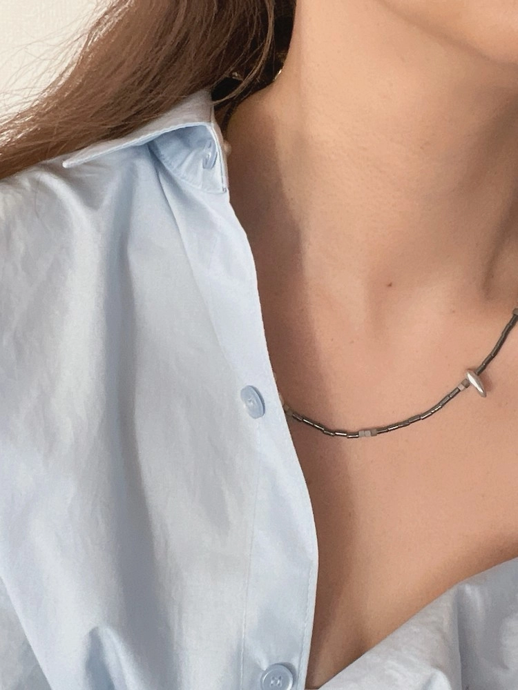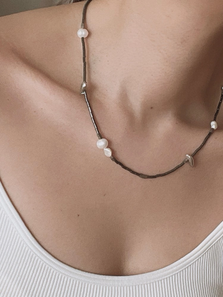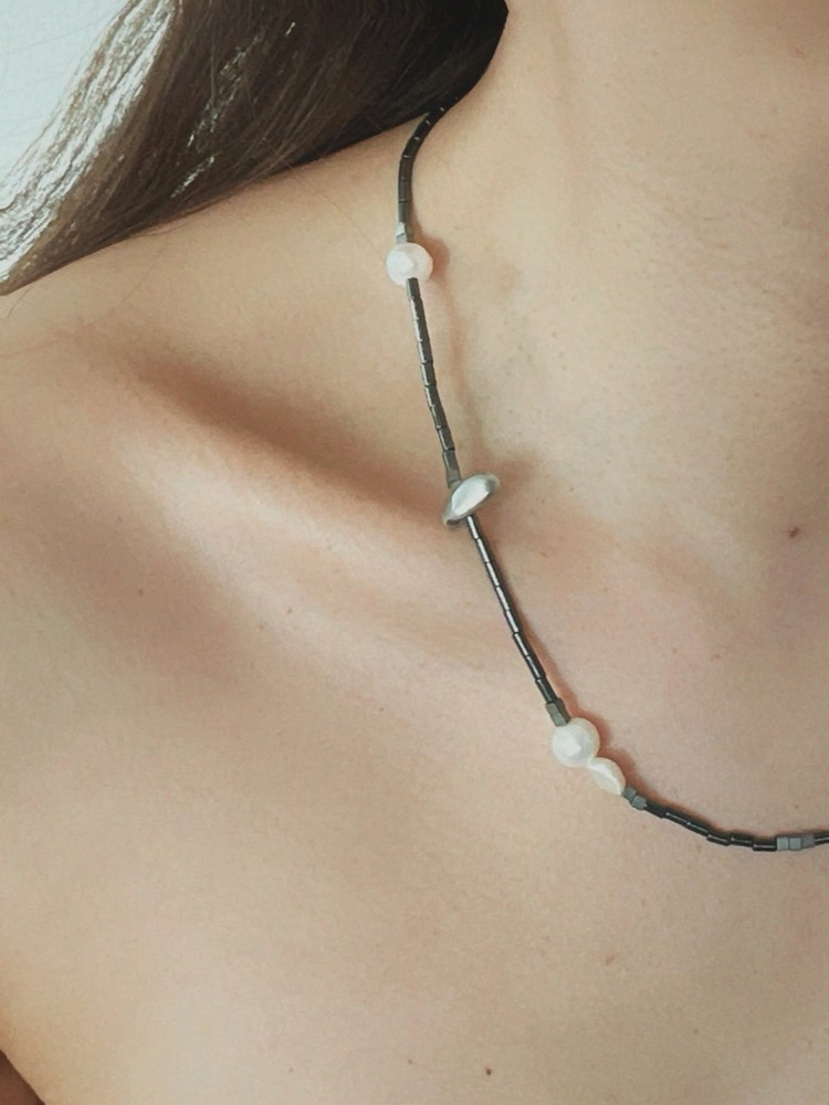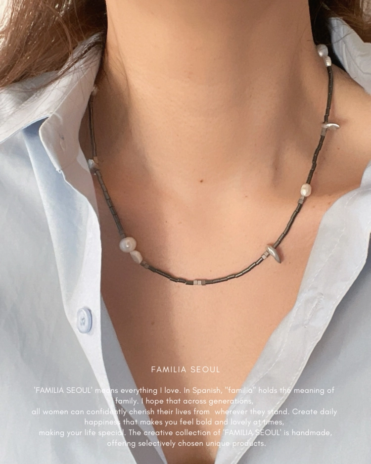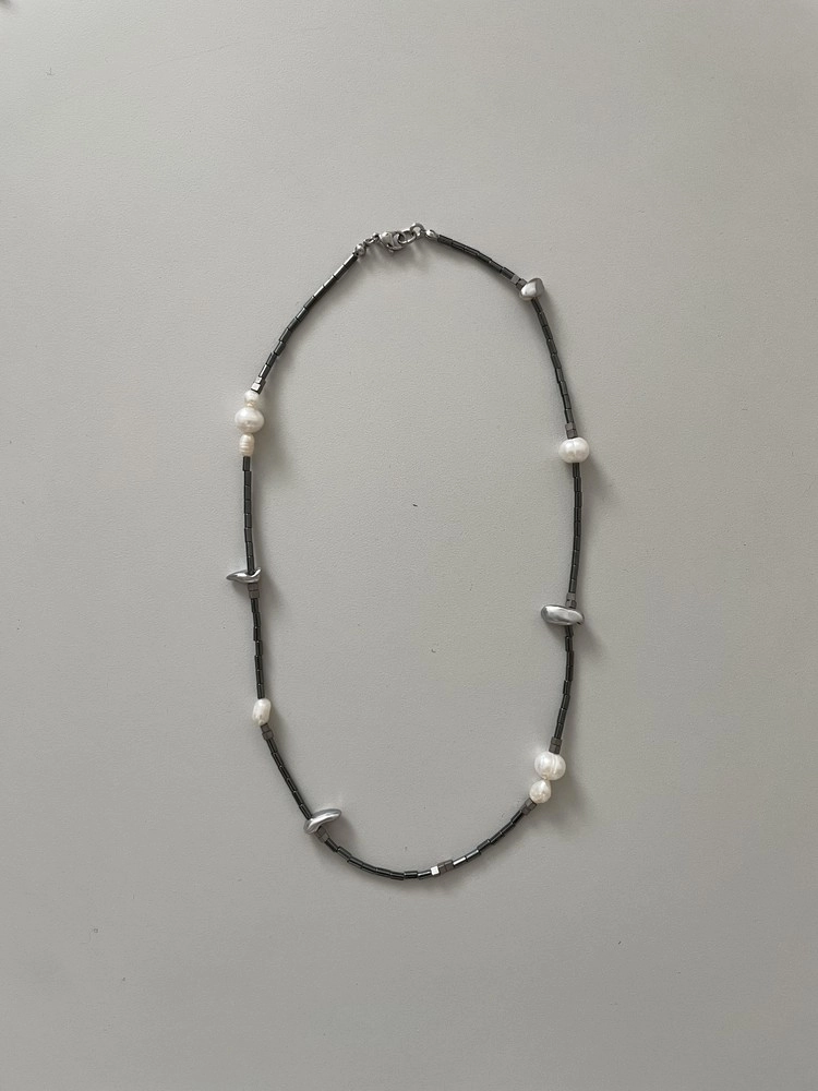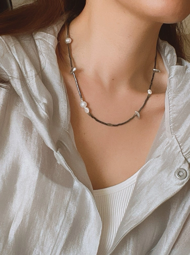 믹스앤 매치된 그레이시한 느낌이 멋스러운 목걸이입니다.