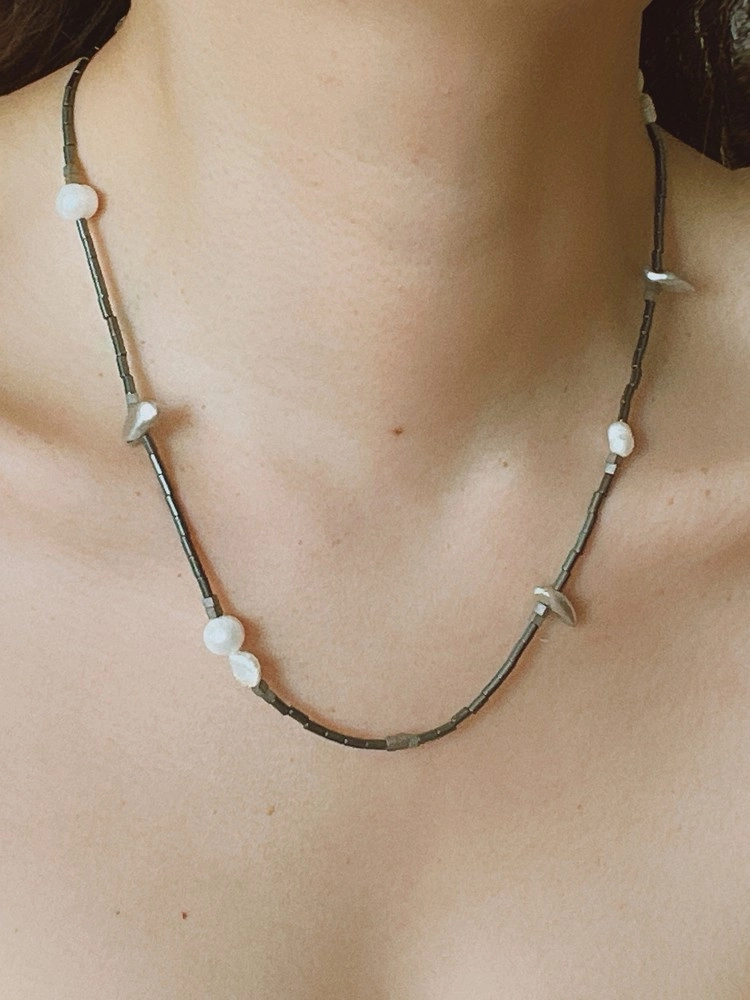 헤마타이트를 비롯한 원석과 진주 그리고 비정형의 비즈로